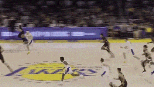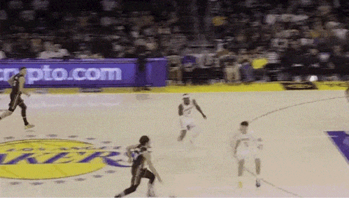 小李潇洒高抛,詹姆斯起飞双手灌筐